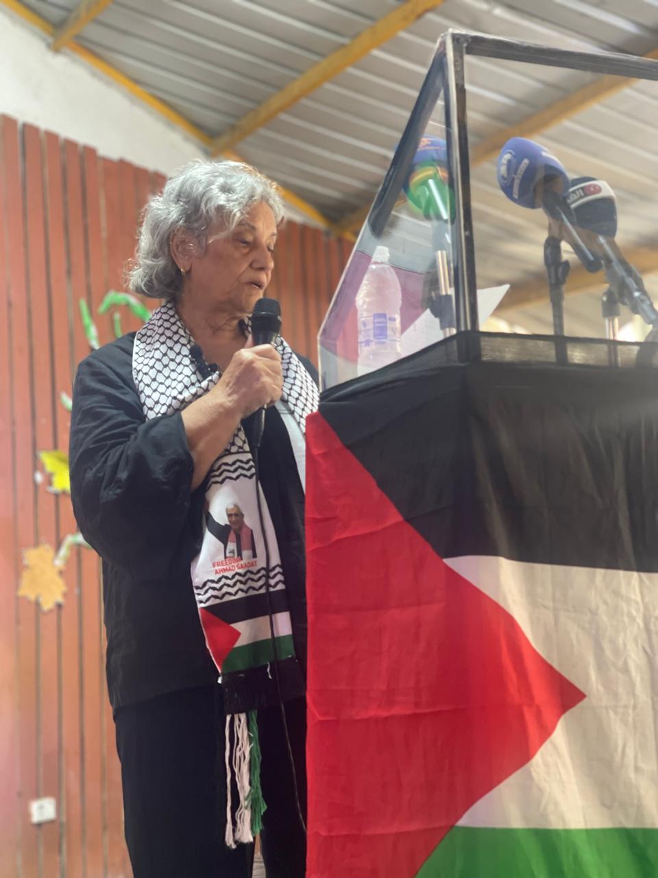 المناضلة سميرة صلاح ألقت كلمة شددت فيها على أن الحرية لا وطن لها إلا في قلوب الأحرار، وأن المرأة الفلسطينية كانت وما زالت شريكة في النضال منذ بداياته، مؤكدة أن دورها تجاوز الأدوار التقليدية لتصبح جزءاً من العمل المقاوم المسلح والاجتماعي والسياسي، وأنها لا تزال صامدة رغم القصف والاعتقال والتهجير. ودعت إلى دعم دولي أكبر للمرأة الفلسطينية، وإلى ملاحقة قادة الاحتلال أمام المحاكم الدولية وكشف زيف الرواية الصهيونية.