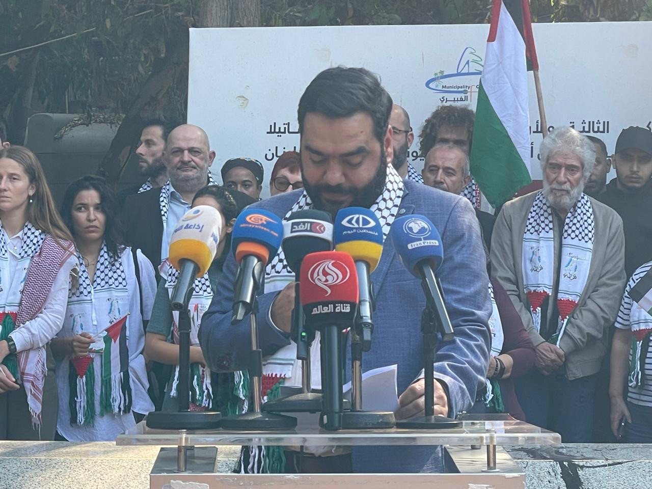 استهلت الجولة بزيارة أضرحة شهداء مجزرة صبرا وشاتيلا ووضع إكليل من الزهور على الأضرحة. وألقى الشيخ عطالله حمود كلمة ترحيبية، تلاه رئيس بلدية الغبيري الحاج أحمد الخنسا الذي أكد أن اللقاء في مثوى شهداء صبرا وشاتيلا هو تجديد للعهد لفلسطين ولأرواح الشهداء وللأسرى والمعتقلين الذين يواجهون القهر والإذلال في سجون الاحتلال الصهيوني بصبر وإيمان.