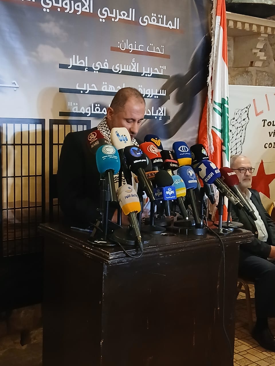 تحت عنوان تحرير الاسرى في اطار سيرورة مواجهة حرب الابادة ودعم المقاومة برعاية المناضل جورج عبد الله بعد الترحيب بالحضور والحديث عن المناسبة والوقوف دفيقة صمت والنشيدين اللبناني والفلسطيني ومن ثم القيت كلمات باللقاء اكدت على وقوفها الى جاتب الحق الفلسطيني والمقاومة في غزة والضفة ولبنان واشادت الكلمات بنضال وتضحيات الشعب الفلسطيني وصموده الاسطوري في مواجهة الة الحرب الصهيوني واعربت الكلمات عن تضامنها مع الشعب الفلسطيني وأكدا الكلمات ان من حق الشعب الفلسطيني ان يقرر مصيره ويقيم دولته المستقلة وعاصمتها القدس