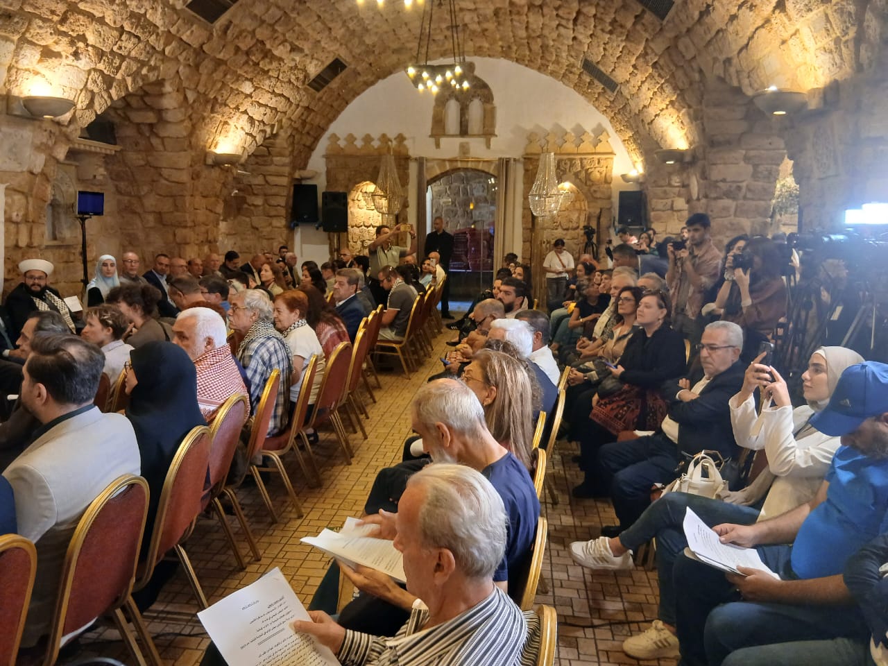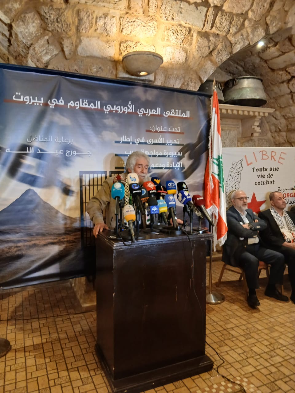 عقد الملتقى العربي الاوروبي المقاوم في بيروت لقاءا وطنيا ضم 80 شحصية متضامنة مع فلسطين والمناضل الاممي جورج عبد الله وذلك اليوم السبت الموافق في ٢٥ تشرين الاول ٢٠٢٥ في مطعم الساحة في العاصمة اللبنانية بيروت بحضور قيادة الجبهة في لبنان وفصائل المقاومة الفلسطينية والاحزاب والقوى الوطنية والاسلامية اللبنانية وشخصيات وطنية لبنانية وفلسطينية ونواء ووزراء حاليين وسابقين ووفود متضامنة