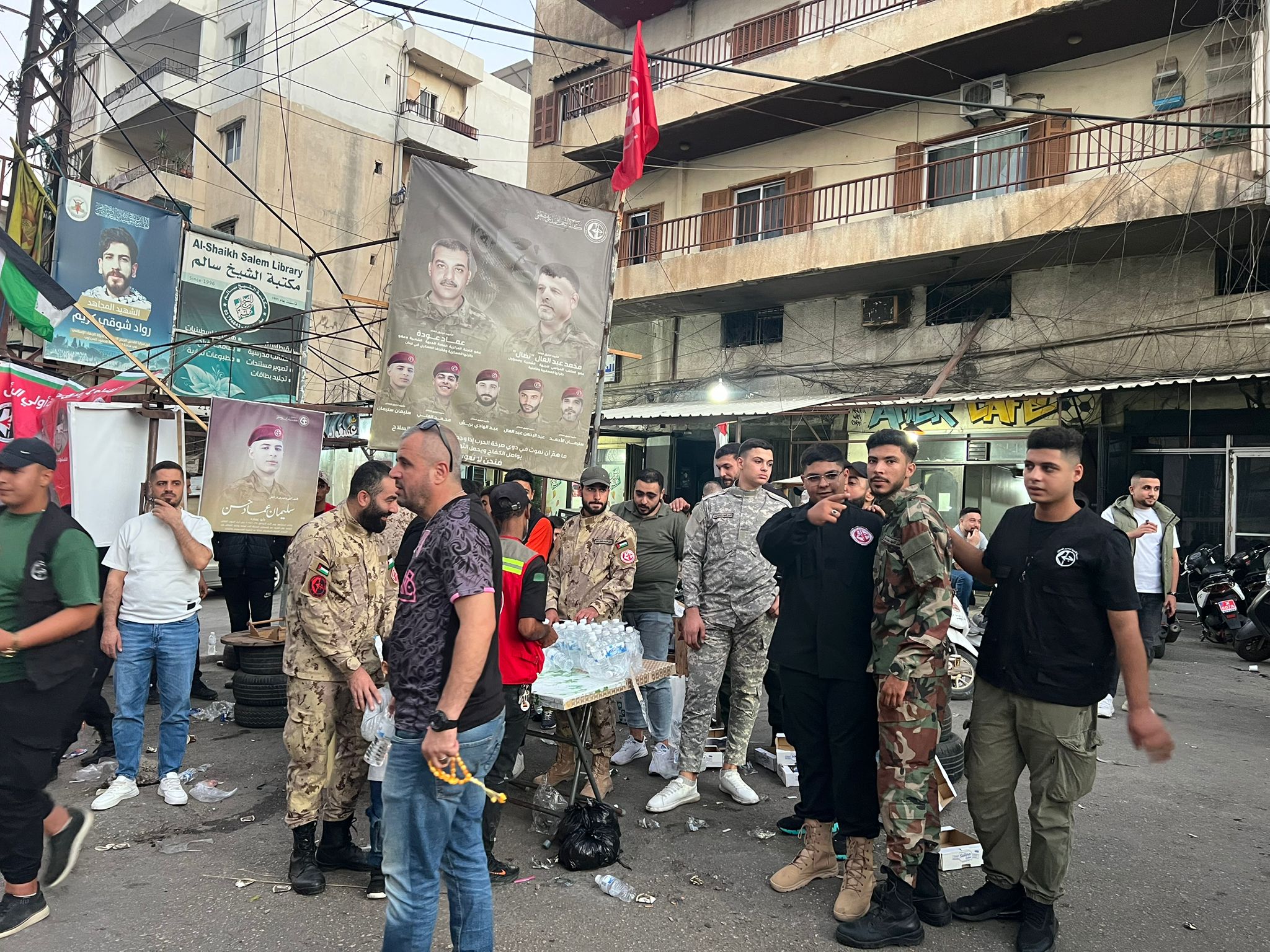 وفي الختام اقام الرفاق في العمل الشعبي في منطقة البداوي حاجز محبة عن روح الشهيد امام محطة سرحان حيث وزع التمر والماء والفهوة والحلويات عن روح الشهيد سليمان .