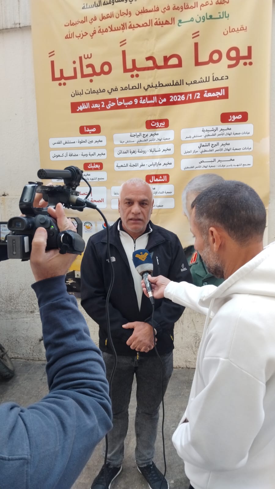 ودعماً لشعبنا الفلسطيني ومقاومته الباسلة لجنة دعم المقاومة في فلسطين ولجان العمل في المخيمات بالتعاون مع الهيئة الصحية الإسلامية في حزب الله اقيم يوماً صحياً مجانياً دعماً للشعب الفلسطيني الصامد في مخيمات لبنان وذلك اليوم الجمعة الموافق في 2/ 1/ 2026 في مراكز جمعية النداء الانساني الشفاء سابقا في مخيمي نهر البارد والبداوي وقد اعطيت التعليمات للاطباء والموظفين لتسهيل اليوم الصحي وتقديم كل ما يلزم للمرضى وقد حضر لتلقي العلاج عدد من المرضى وصرفت لهم الادوية اللازمة وخلال اليوم الصحي زار مسؤول العلاقات اللبنانية للجبهة الشعبية لتحرير فلسطين في لبنان فتحي ابو علي حيث اطلع على سير العمل وادلى بالتصريح التالي للمنار قال في الذكرى السنوية لاستشهاد القائد الكبير قاسم سليماني نوجه التحيه الى روحه الطاهرة النقية الزكية الذي قدم روحه فداء للمقاومة ولفلسطين و الدعم والمساندة للمقاومة وللشعب الفلسطيني