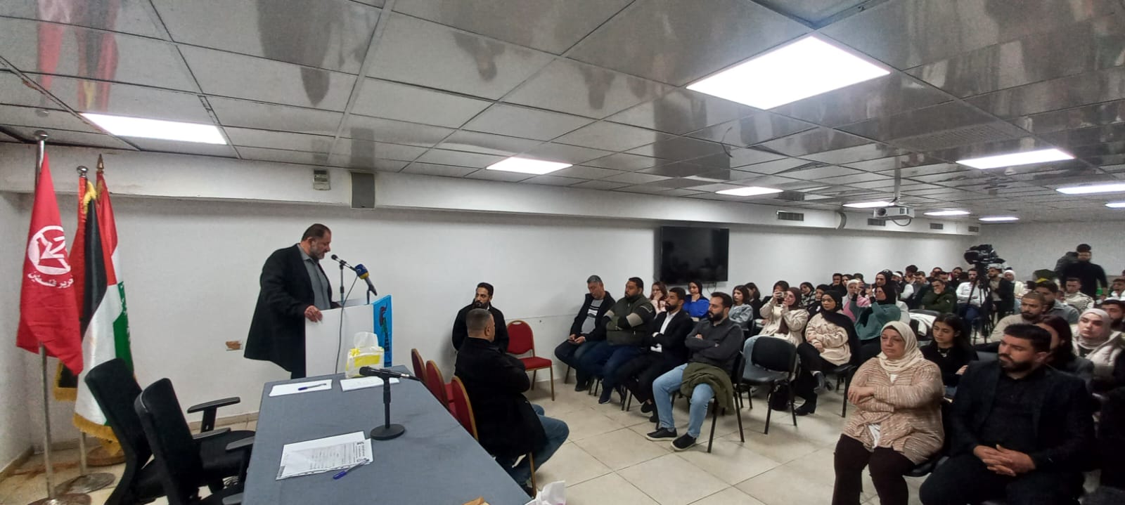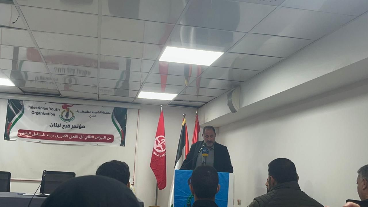 و ألقى مسؤول الجبهة الشعبية لتحرير فلسطين في لبنان، الرفيق هيثم عبده، كلمةً أكد فيها على الدور النضالي المتقدّم للشباب الفلسطيني، ولا سيّما في المخيمات الفلسطينية في لبنان، في الدفاع عن الهوية الوطنية والحقوق التاريخية لشعبنا. وتطرّق إلى التحديات الراهنة التي يتعرّض لها شعبنا الفلسطيني، وفي مقدّمها تقليصات وكالة الأونروا وانعكاساتها الخطيرة على الواقع الاجتماعي والإنساني للاجئين، مشيراً إلى أن منظمة الشبيبة الفلسطينية مدعوّة اليوم إلى لعب دورٍ طليعي في مواجهة هذه التحديات، وأن تكون إطاراً جامعاً للطاقات الشبابية ومنبراً للفكر الثقافي والوطني المقاوم.