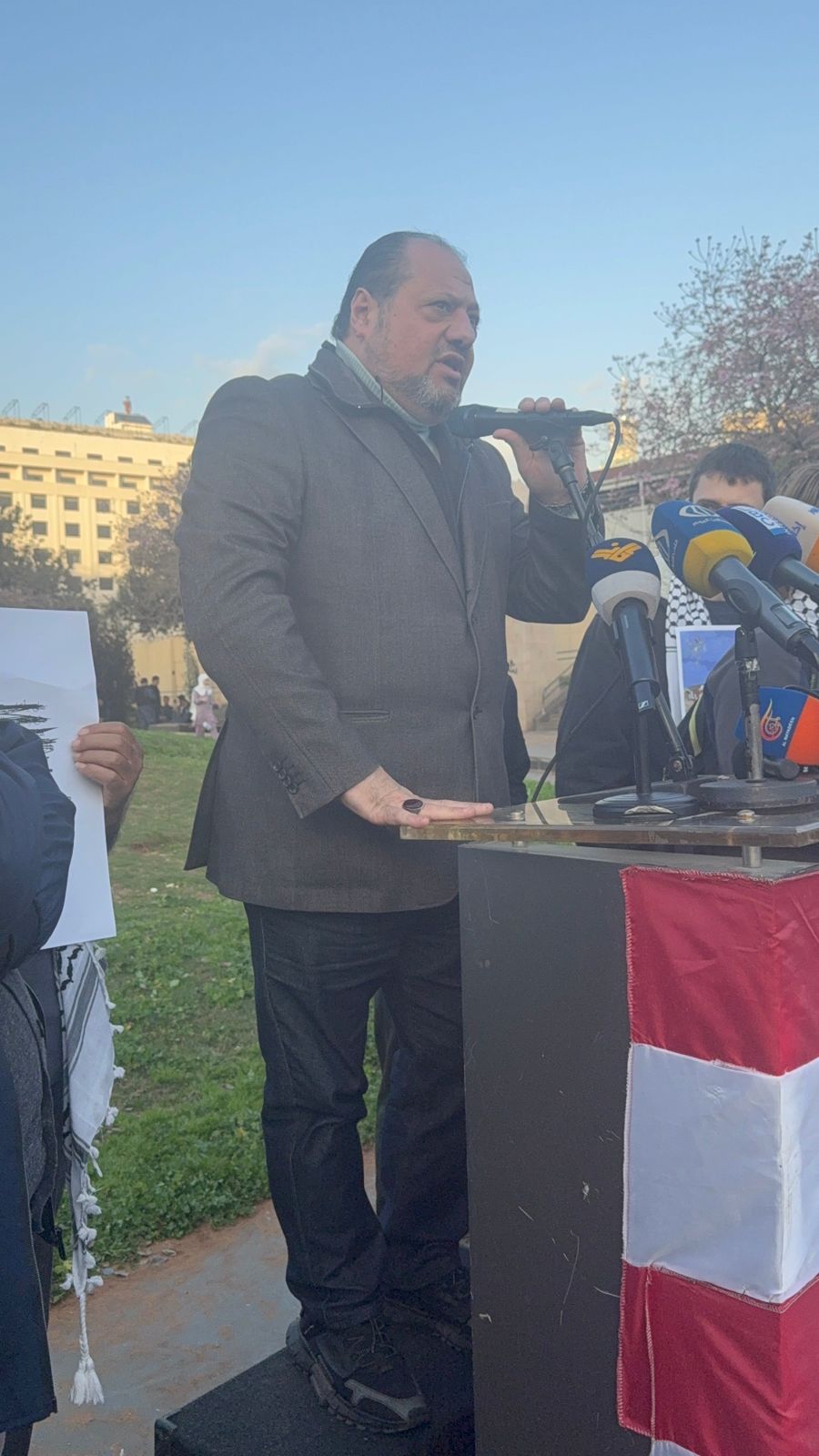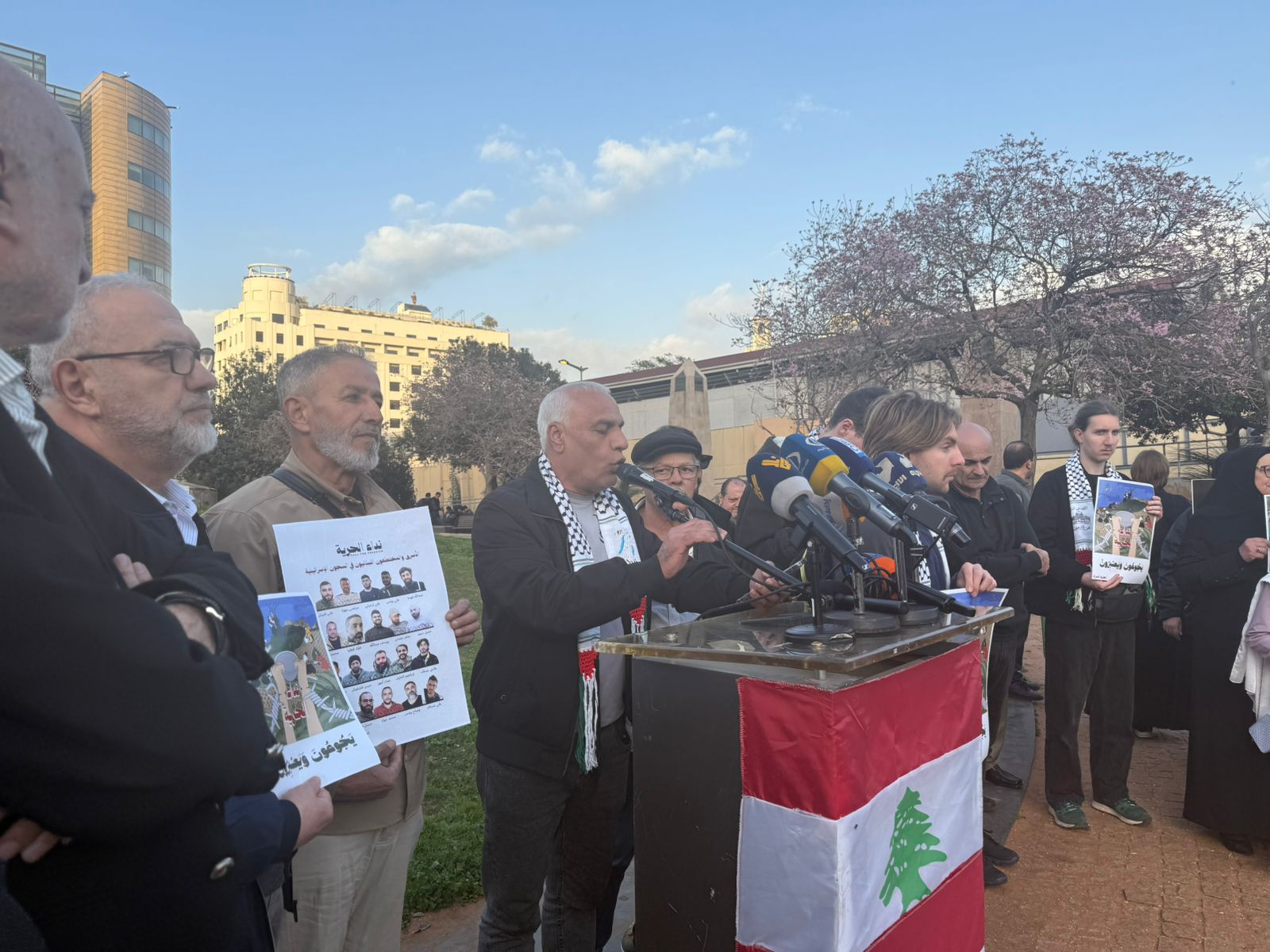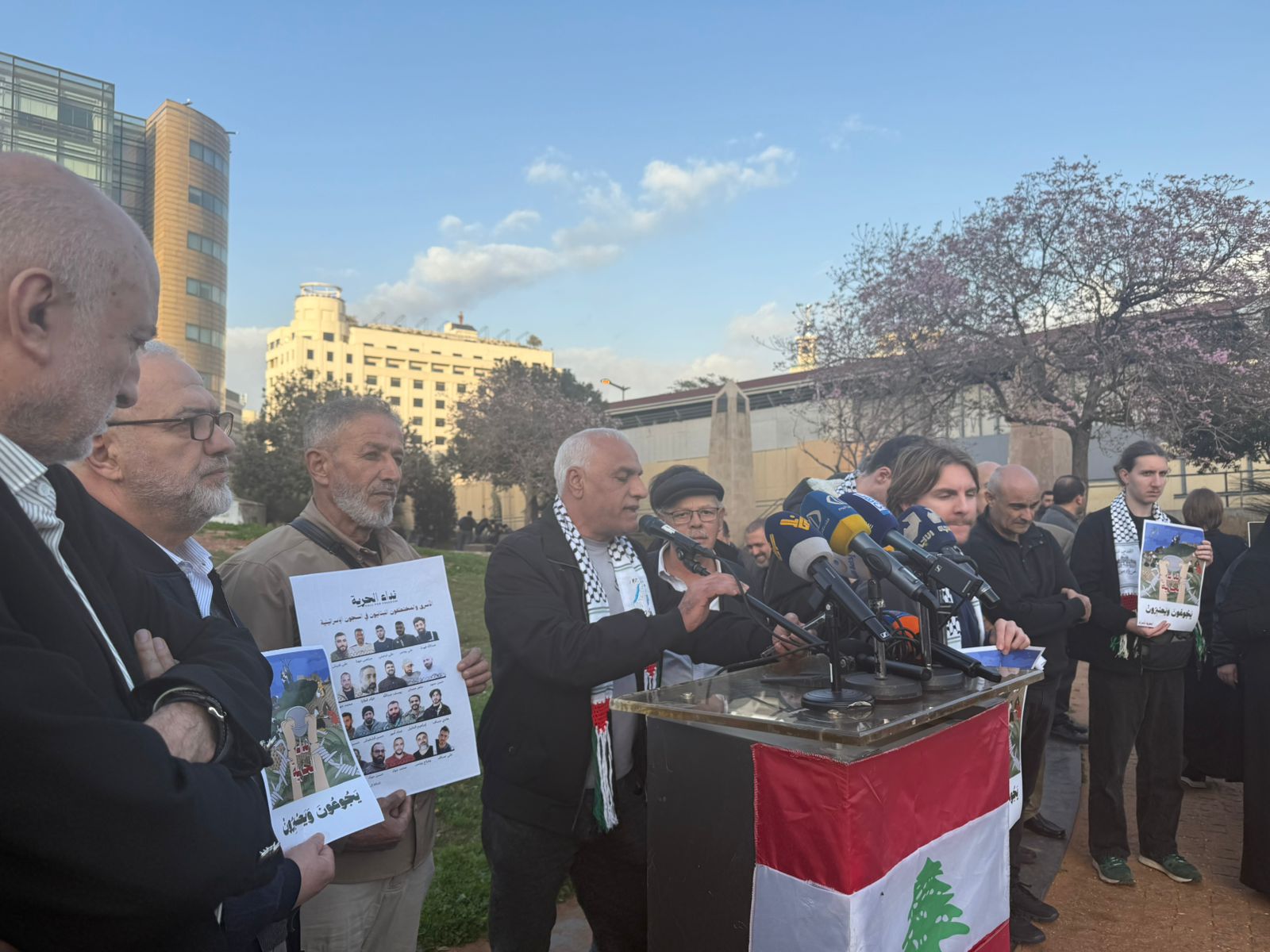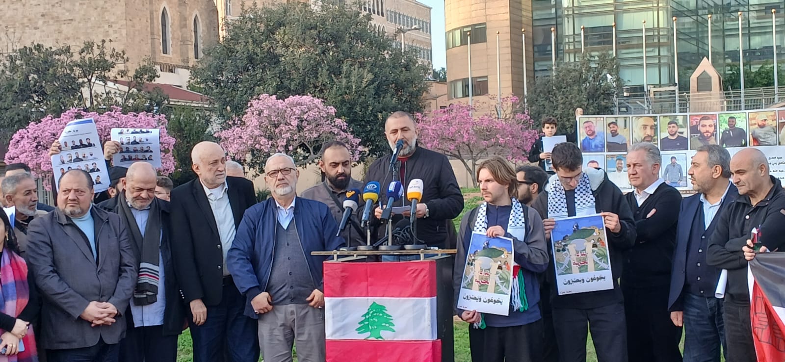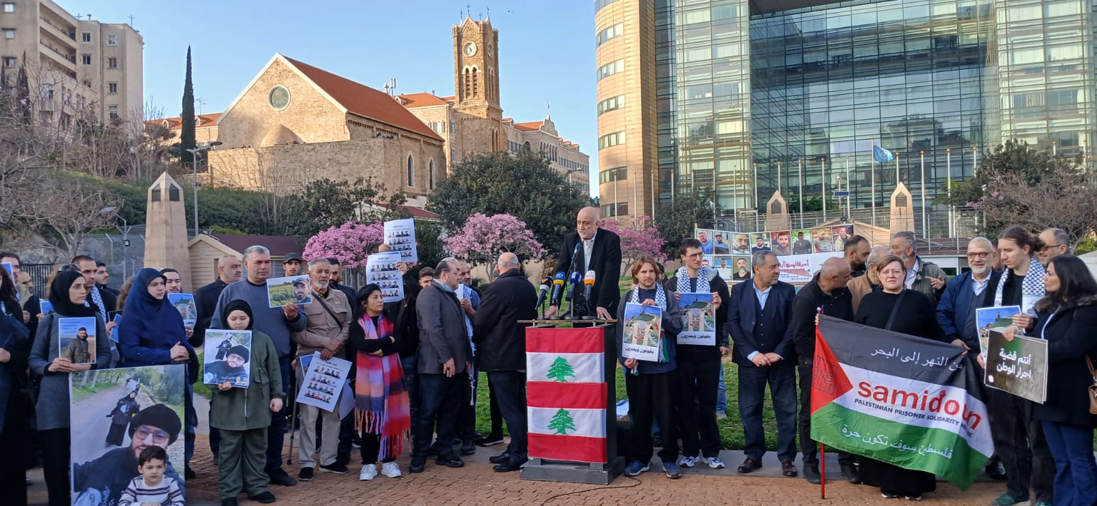 نظّمت عوائل الأسرى والمعتقلين اللبنانيين في سجون الاحتلال، و هيئة ممثلي الأسرى والمحررين، وقفة تضامنية أمام مبنى الإسكوا في بيروت، يوم السبت 21 شباط/فبراير 2026، للمطالبة الدولة اللبنانية بممارسة مزيد من الضغوط على الجهات الدولية المعنية لكشف مصير الأسرى والعمل على تحريرهم وإعادتهم إلى عائلاتهم في أسرع وقت.