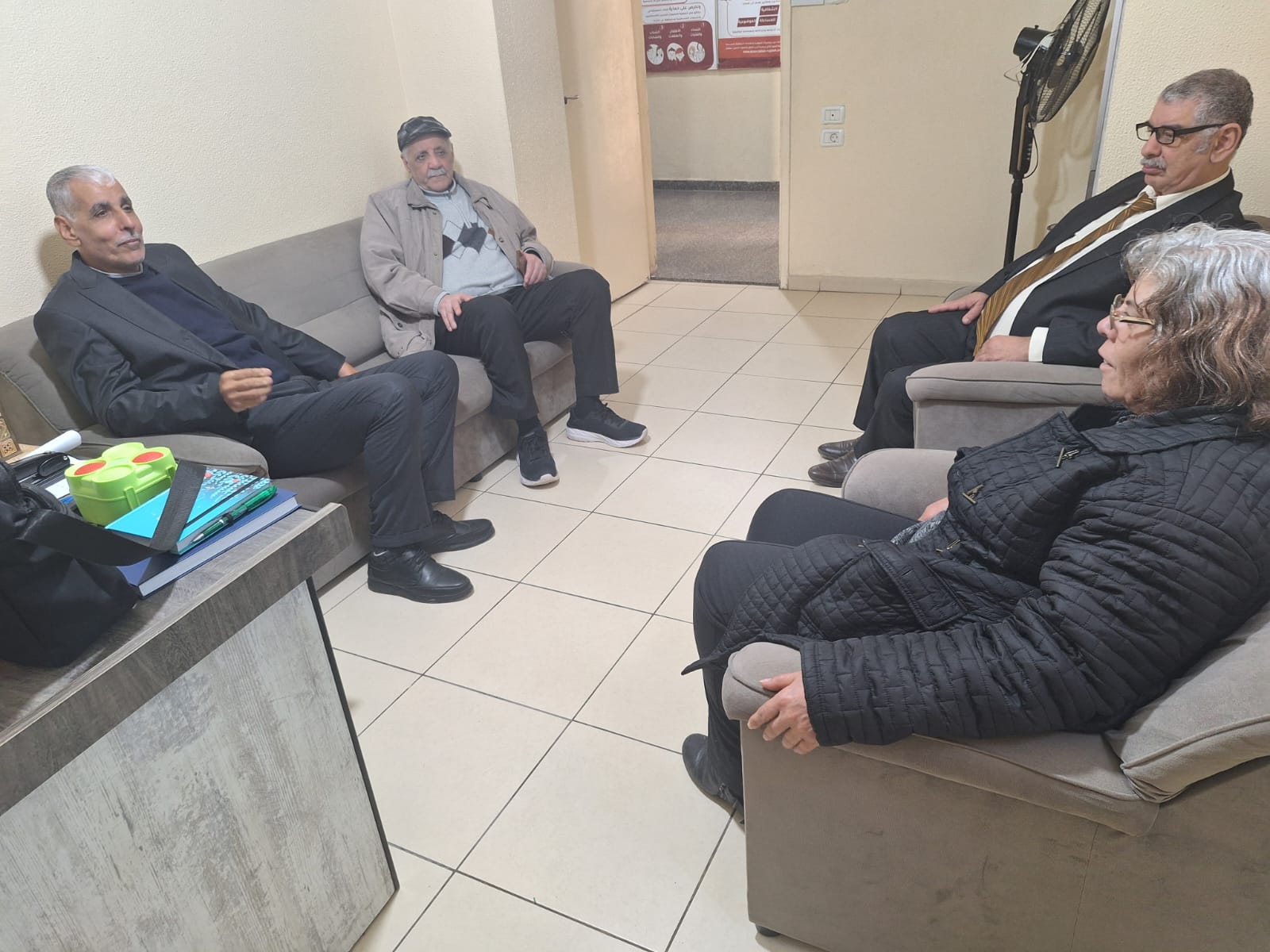اللقاء الاول كان مع مدير جمعية بيت أطفال الصمود في لبنان الأستاذ قاسم العينا، ومديرها في الشمال الأستاذ فهمي موسى، حيث قدّم العينا عرضًا حول الدور الإنساني والاجتماعي الذي تقوم به الجمعية، لا سيما في خدمة أبناء الشعب الفلسطيني وخصوصًا الفئات الأكثر حاجة. كما استعرض موسى المعايير التقنية التي تعتمدها الجمعية في عملها.