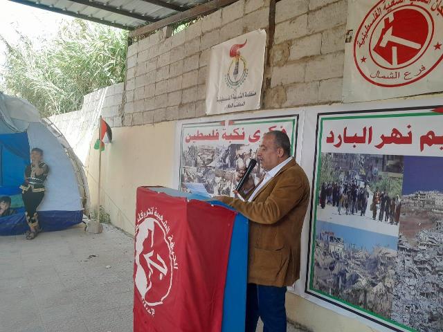 ثم ألقى عضو قيادة منطقة نهر البارد في الجبهة الشعبية لتحرير فلسطين أبو حسن فرغاوي كلمة، شدد فيها على أهمية دور الشباب في حماية الهوية الوطنية، ومواصلة النضال حتى التحرير والعودة.