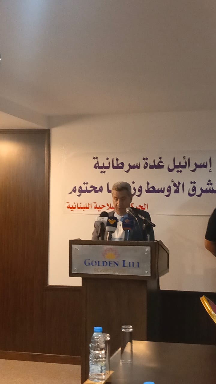 وألقى حربي خليل كلمة حركة أنصار الله الفلسطينية حيث أكد ان المقاومة في فلسطين ولبنان لا تزال تواجه المشروع الصهيوني رغم كل ما تتعرض له من إستهداف للقادة، الا ان خيار المقاومة هو الطريق نحو استعادة كامل التراب الفلسطيني من البحر الى النهر، وكل الاراضي المحتلة فنحن نواجه كيانا لا حدود لأطماعه وحدود كيانه تشمل معظم دول المنطقة التي يعتبرها جزءاً من كيانه.