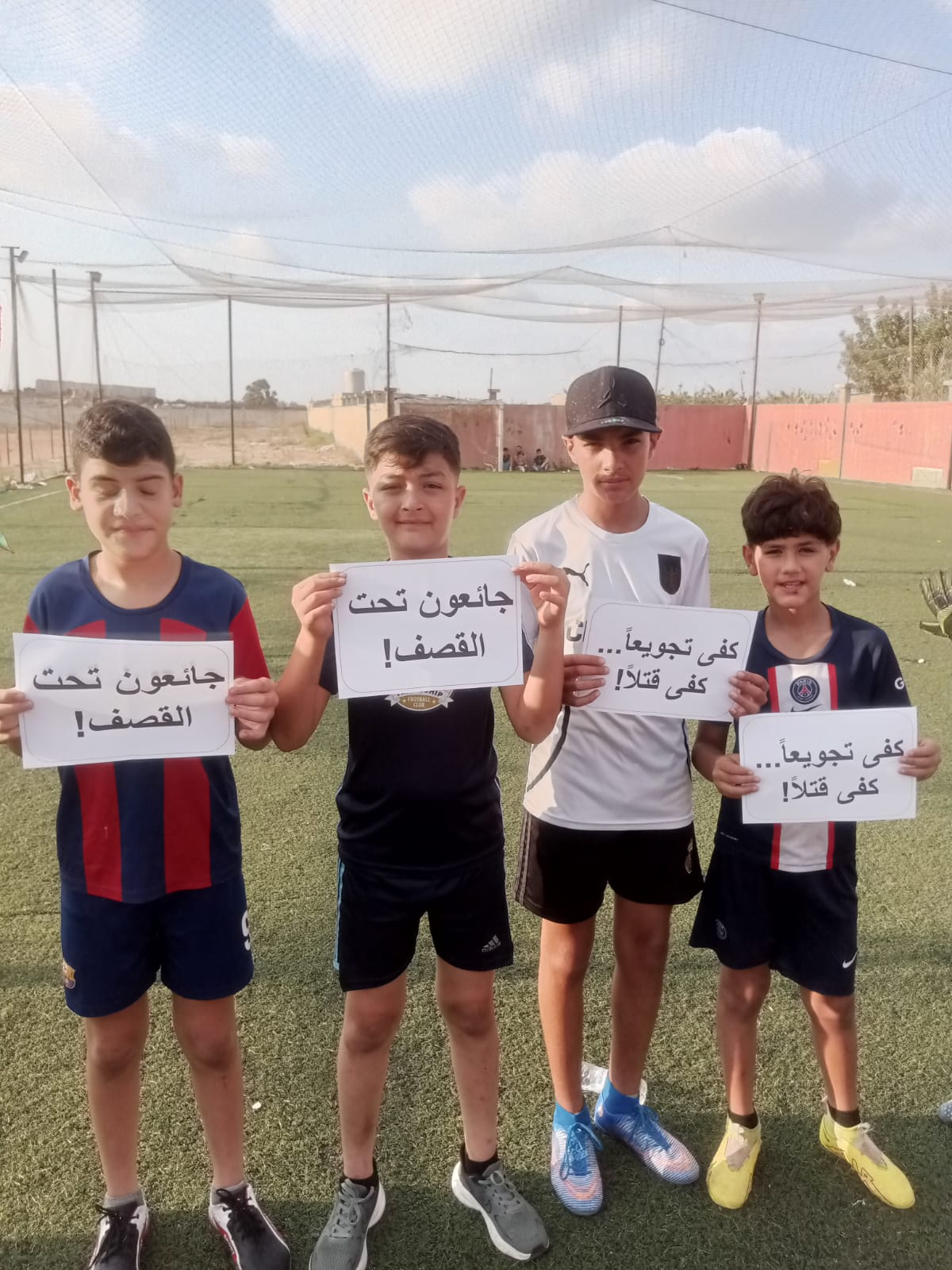 كلمة فريق الصداقة ألقاها اللاعب ربيع أحمد: قال نحن مع أطفال غزة في القلب والروح”