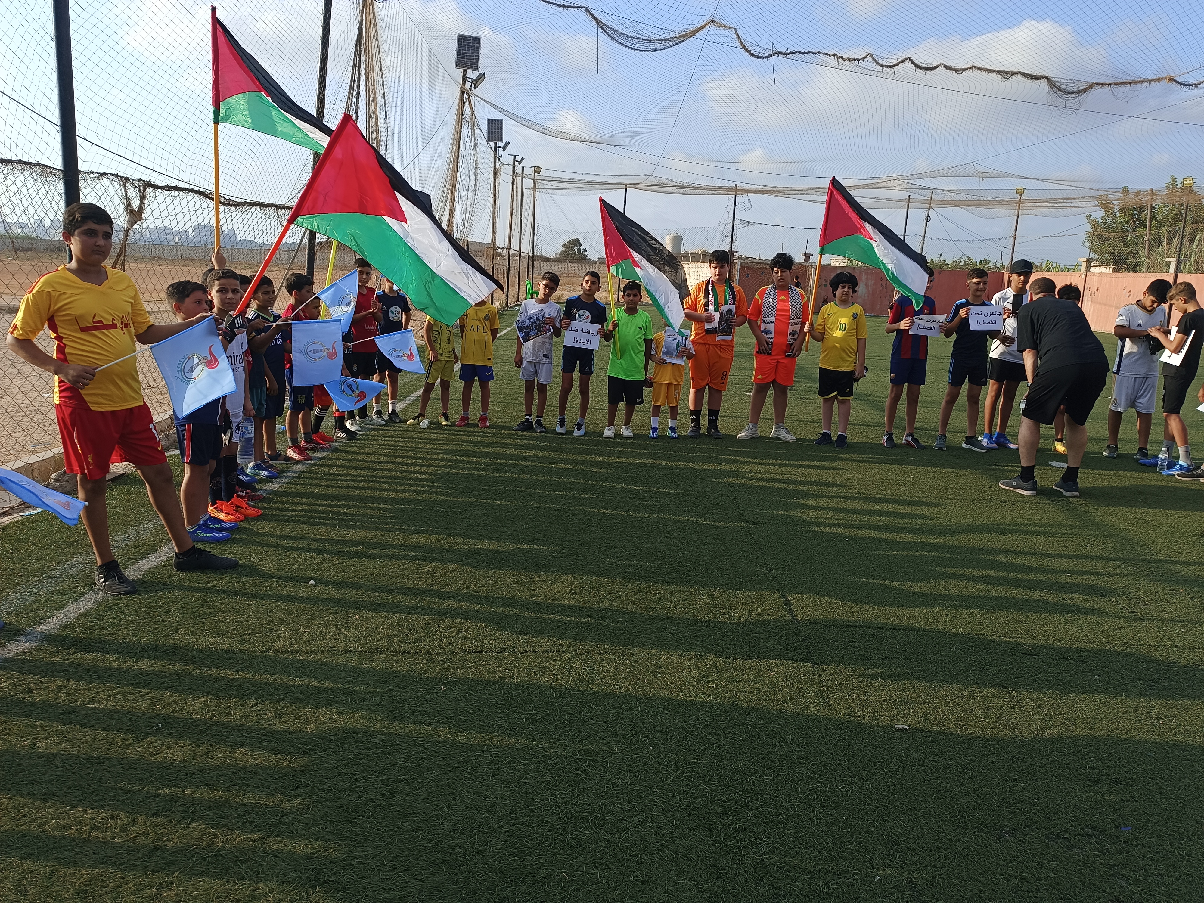 في ظل المجازر اليومية التي يتعرّض لها أبناء شعبنا في قطاع غزة، وتحت شعارات رفضا للعدوان الصهيوني والإبادة الجماعية والتجويع، نظّمت منظمة الشبيبة الفلسطينية بالشراكة مع أكاديمية عكا الرياضية وفريق الصداقة، يومًا وطنيًا رياضيًا تضامنيًا، يوم الإثنين 21 تموز 2025، على ارض ملعب الإصلاح في مخيم الرشيدية جنوبي لبنان بمشاركة عشرات الأطفال والناشئين من مختلف الفرق الرياضية ، عبّر من خلاله أبناء المخيم عن تضامنهم الكامل مع غزة، وصمودهم الوطني والثقافي في وجه مشاريع الطمس والتطبيع والصمت العربي والدولي.