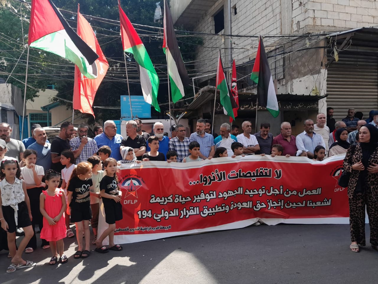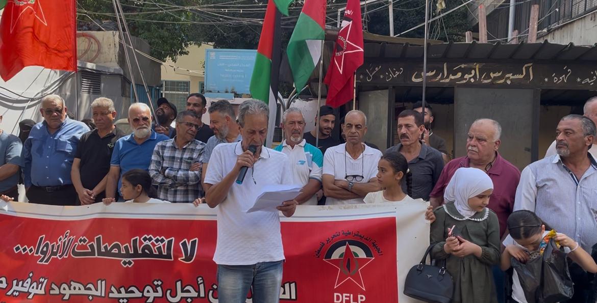 نظم اعتصام جماهيري أمام مقر عيادة الانروا في مخيم عين الحلوة يوم الجمعة الموافق 29 اب 2025 بعد الترحيب بالحضور والحديث عن المناسبة قدمتها عضو قيادة المنظمة النسائية الديمقراطية ميساء العلي ومن ثم القيت الكلمات التالية :