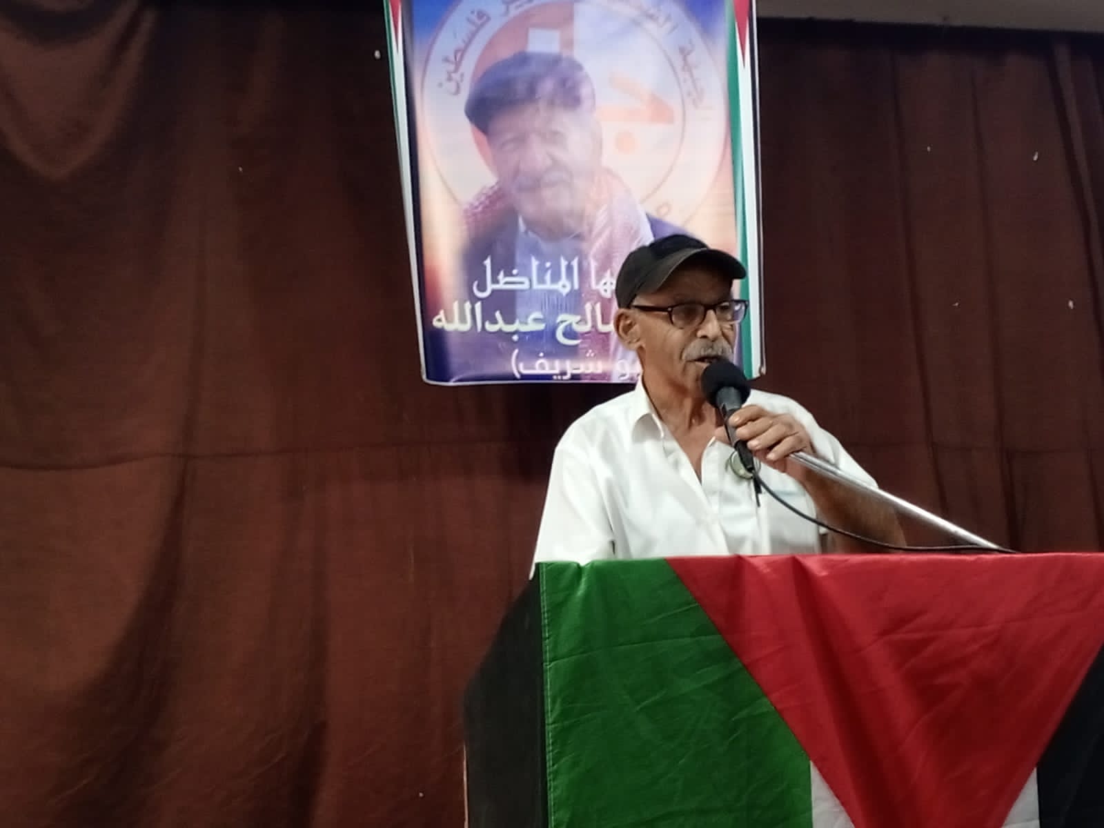 خطيب و أمام مسجد الفاروق عمر بن الخطاب الشيخ ابو ضياء أشار في كلمته إلى خصال و صفات الراحل التي كان يتحلى بها ، و هو الذي قضى حياته مناضلا من أجل الحرية و العودة الى فلسطين وختم كلمته بالدعاء للفقيد وبالنصر لغزة والمقاومة .