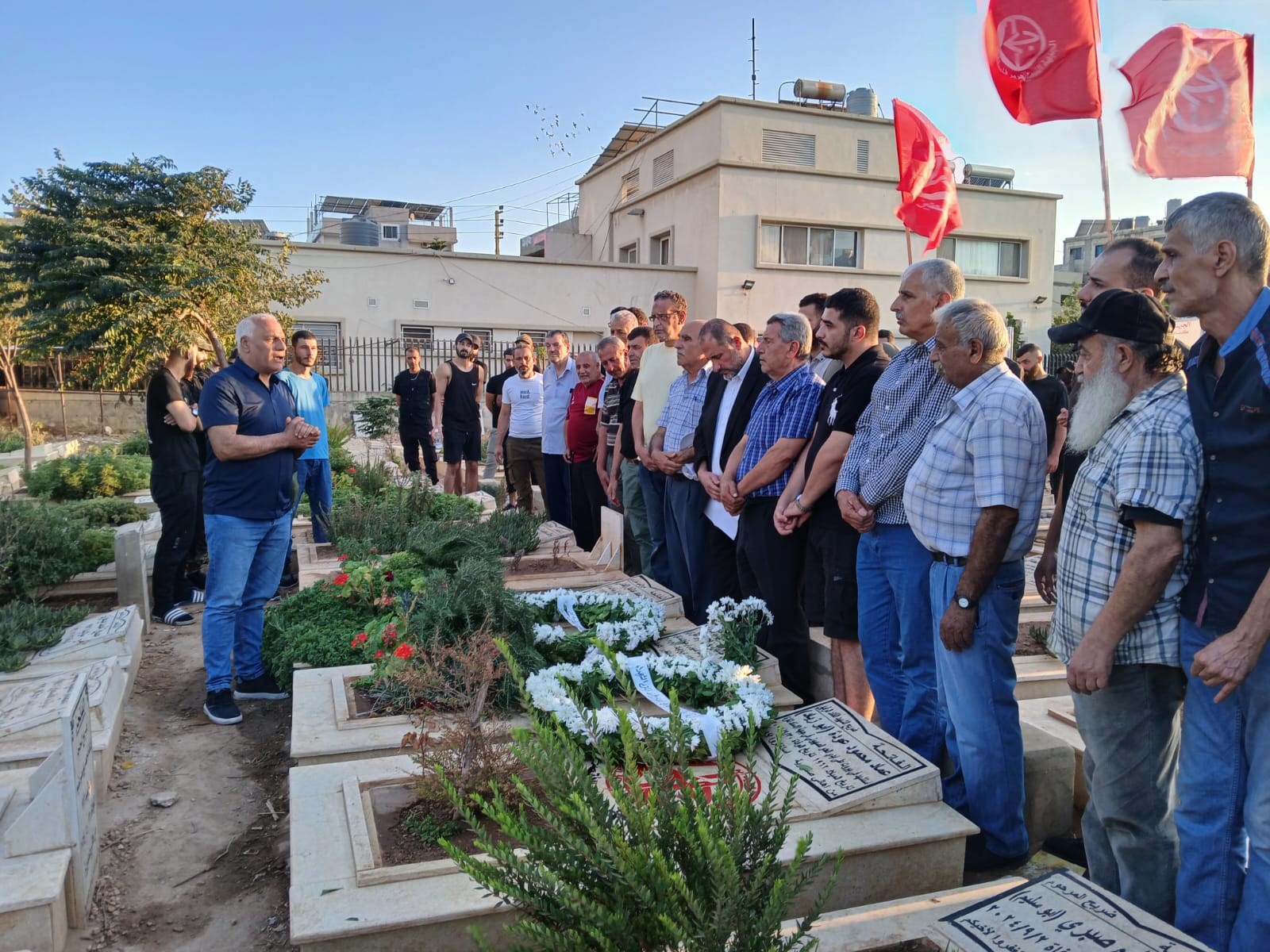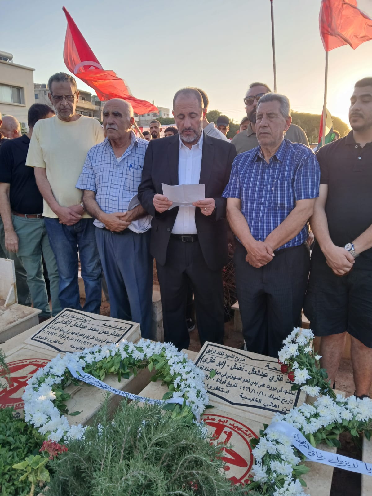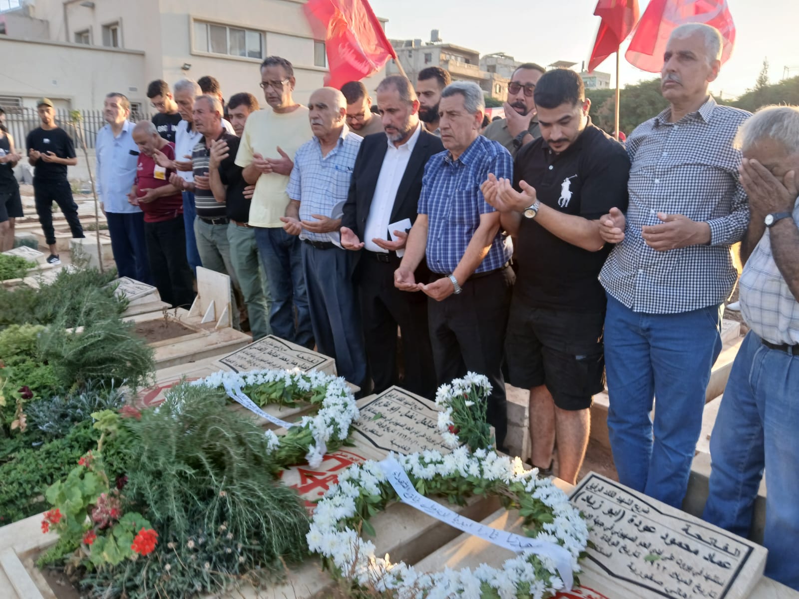 وفاءا منها للشهداء على طريق القدس ولمناسبة الذكرى السنوية الاولى على استشهاد عضو المكتب السياسي للجبهة الشعبية لتحرير فلسطين القائد الشهيد نضال عبد العال وعضو اللجنة المركزية القائد الشهيد عماد عودة والمقاتل الشهيد عبد الرحمن عبد العال زارت. قيادة الجبهة في لبنان ومنطقة نهر البارد عوائل الشهداء ناقلين لهم تحيات الامين العام ونائبه وقيادة الجبهة ومن ثم احيت الجبهة الشعبية لتحرير فلسطين المناسبة بمسيرة رمزية انطلقت من مكتب الجبهة الشعبية في مخيم نهر البارد وذلك عصر يوم الثلاثاء الموافق في ٣٠ ايلول ٢٠٢٥ بمشاركة قيادة الجبهة الشعبية في لبنان وقيادة وكوادر الجبهة في منطقة نهر البارد وعوائل الشهداء وحشد من الرفاق تقدمها حملة صور الشهداء ورايات الجبهة واعلام فلسطين واكاليل الزهر والفرق الكشفية جابت المسيرة شوارع المخيم وصولا الى مقبر خالد ابن الوليد حيث وضعت قيادة الجبهة وعوائل الشهداء اكاليل من الورد على اضرحتهم ومن ثم رحب نائب مسؤول المكتب الاعلامي للجبهة الشعبية في لبنان فتحي ابو علي بالحضور وبعوائل الشهداء متحدثا عن المناسبة ومن ثم قرأت الفاتحة على ارواح الشهداء الابرار.