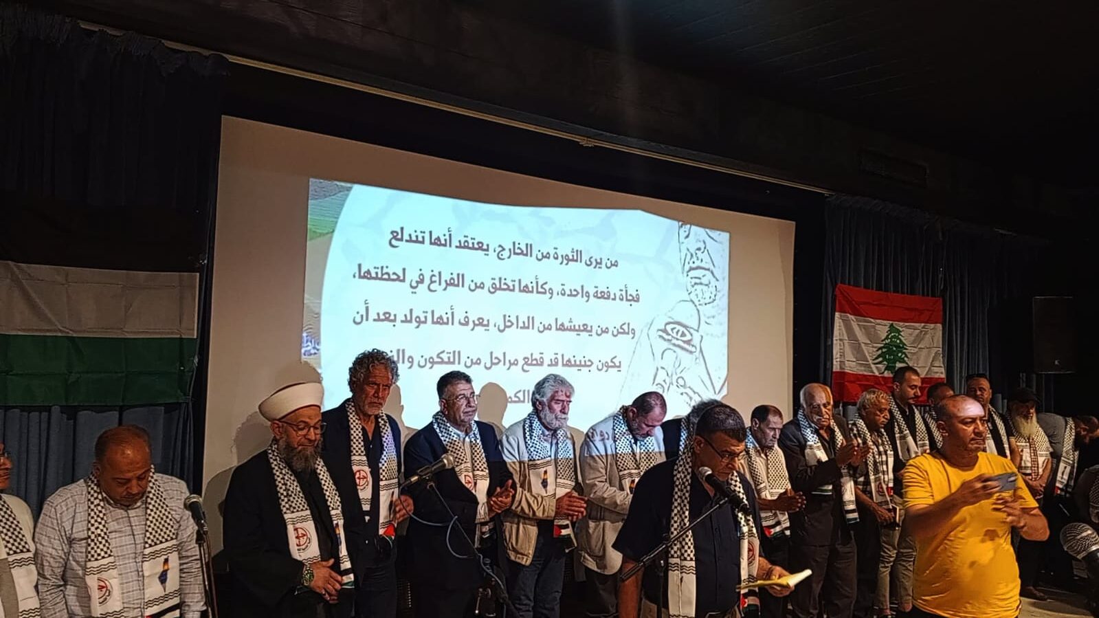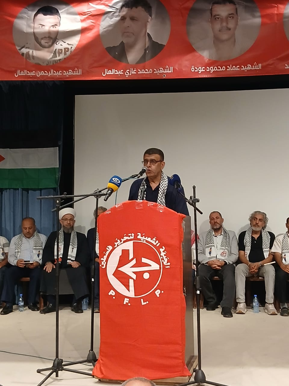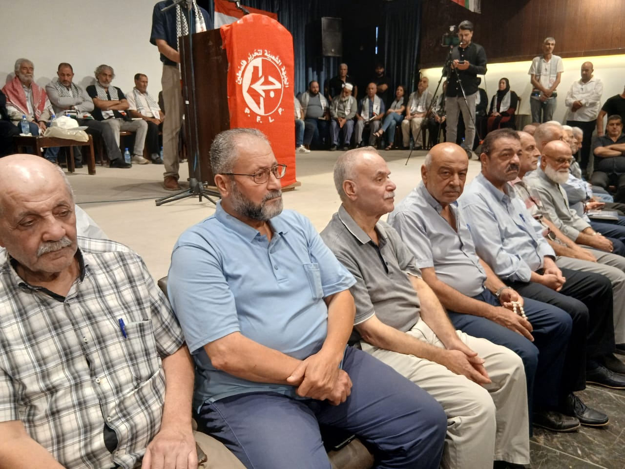 في مسرح كنعان في نهر البارد بحضور قيادة الجبهة الشعبية لتحرير فلسطين في لبنان و قيادة وكوادر وانصار الجبهة في نهر البارد والبداوي وحشد من الرفاق والرفيقات وفصائل المقاومة واللجان الشعبية الفلسطينية والاحزاب والقوى الوطنية والاسلامية اللبنانية ورجال دين ومخاتير ورؤساء بلديات وشخصيات وطنية واعتبارية فلسطينية ولبنانية وفعاليات ووجهاء من مخيمات الشمال والجوار وعوائل واسر شهداء الجبهة ومؤسسات ثقافية وتربوية واجتماعية ومكاتب نسوية وطلابية ومنظات شبابية ولجان عمالية وعزفت فرقة الكشاف الموسيقى الوطنية ورفع ثلة من الكشاف والشباب والزهرات اعلام فلسطين ورايات الجبهة وصور الشهداء اللذين اصطفوا على جانبي الطريق لاستقبال الضيوف .