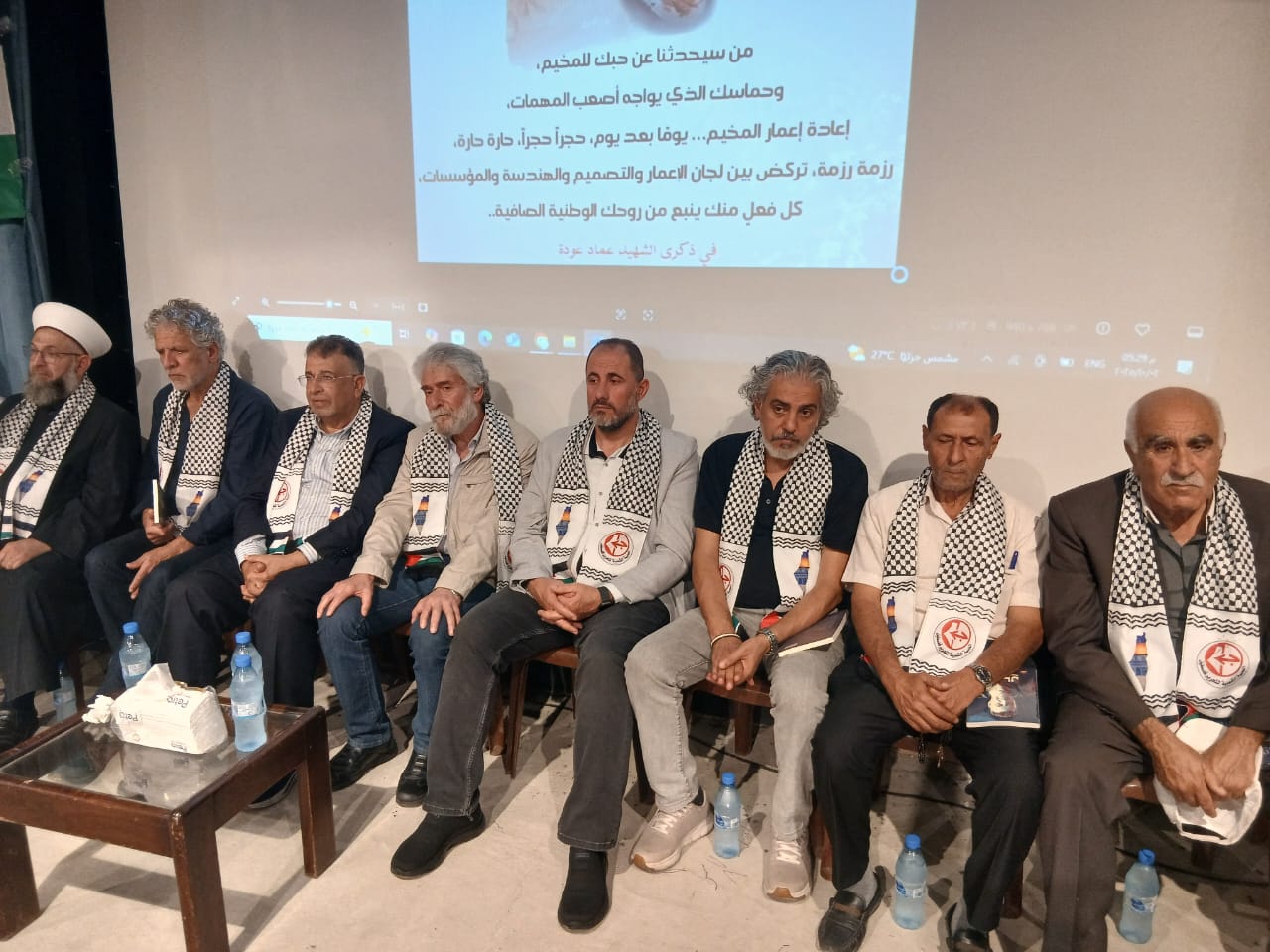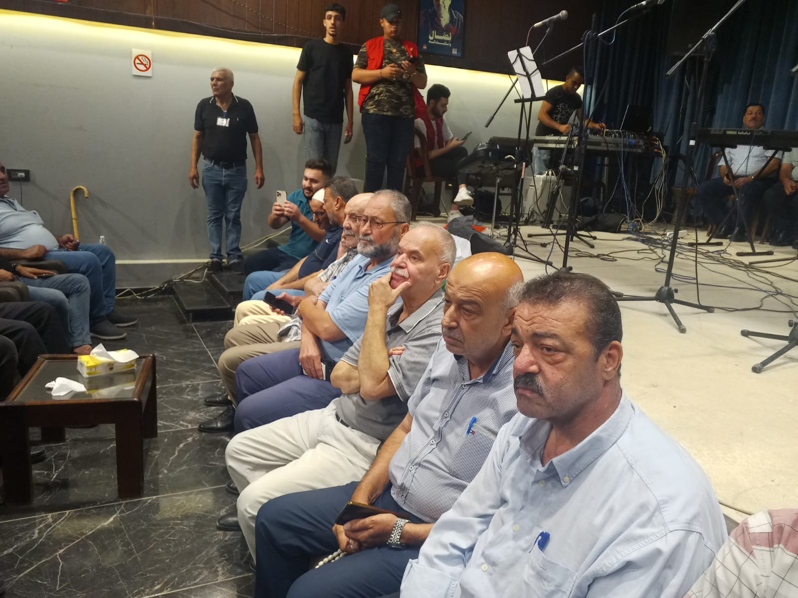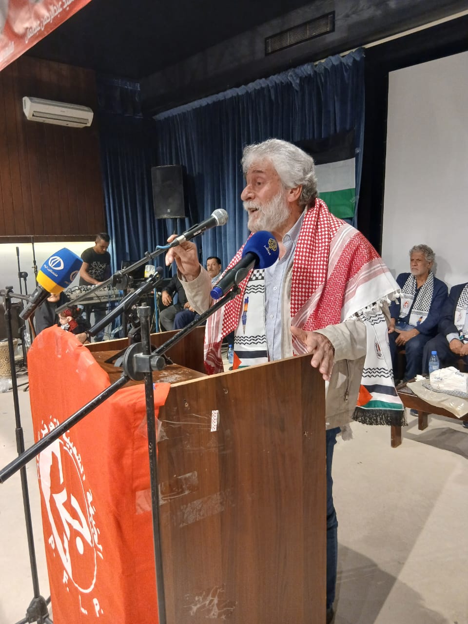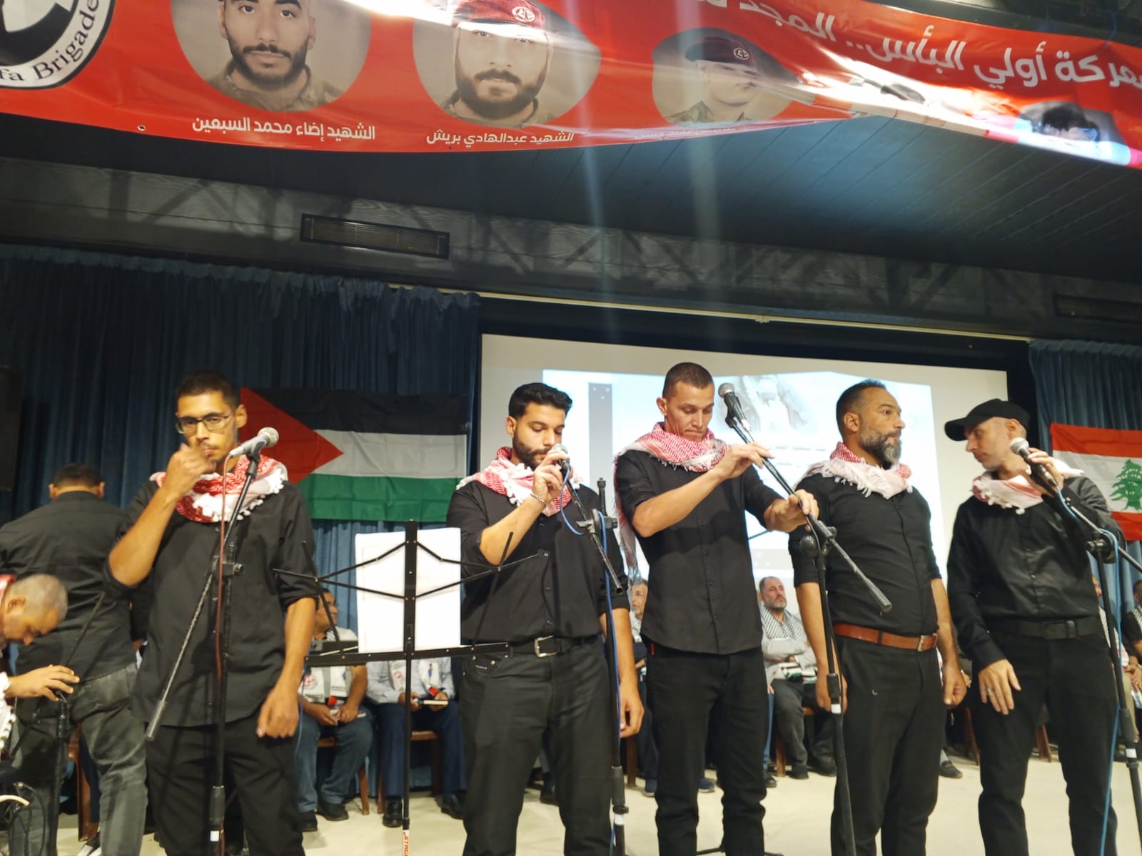 في مسرح كنعان في نهر البارد بحضور قيادة الجبهة الشعبية لتحرير فلسطين في لبنان و قيادة وكوادر وانصار الجبهة في نهر البارد والبداوي وحشد من الرفاق والرفيقات وفصائل المقاومة واللجان الشعبية الفلسطينية والاحزاب والقوى الوطنية والاسلامية اللبنانية ورجال دين ومخاتير ورؤساء بلديات وشخصيات وطنية واعتبارية فلسطينية ولبنانية وفعاليات ووجهاء من مخيمات الشمال والجوار وعوائل واسر شهداء الجبهة ومؤسسات ثقافية وتربوية واجتماعية ومكاتب نسوية وطلابية ومنظات شبابية ولجان عمالية وعزفت فرقة الكشاف الموسيقى الوطنية ورفع ثلة من الكشاف والشباب والزهرات اعلام فلسطين ورايات الجبهة وصور الشهداء اللذين اصطفوا على جانبي الطريق لاستقبال الضيوف .